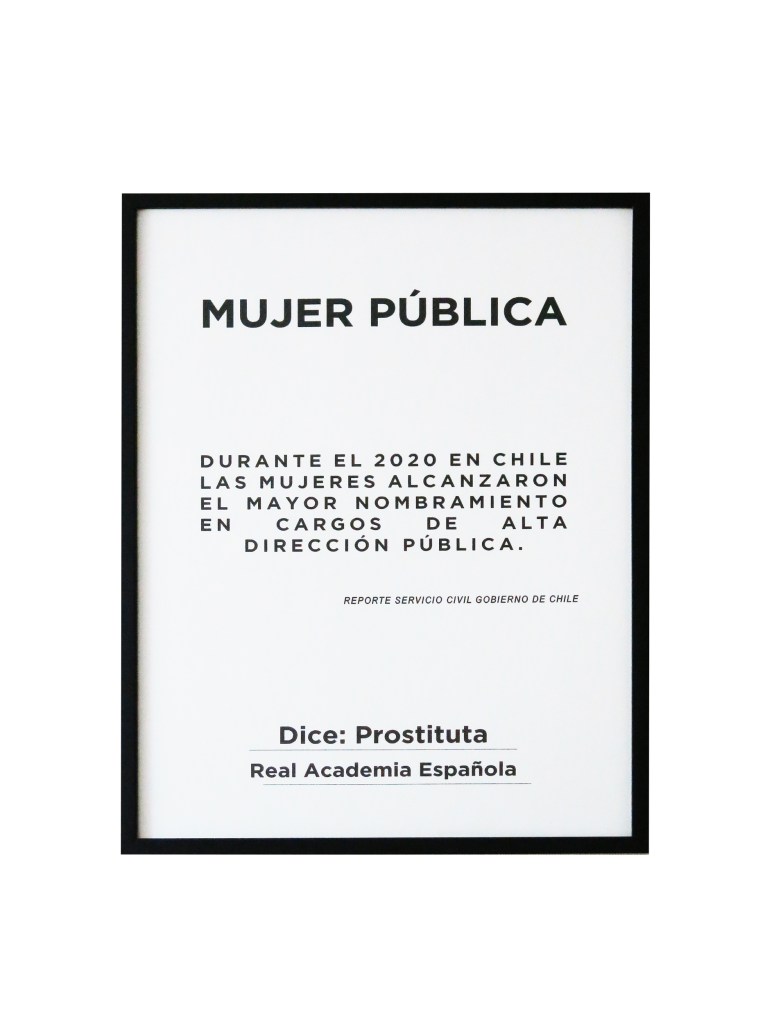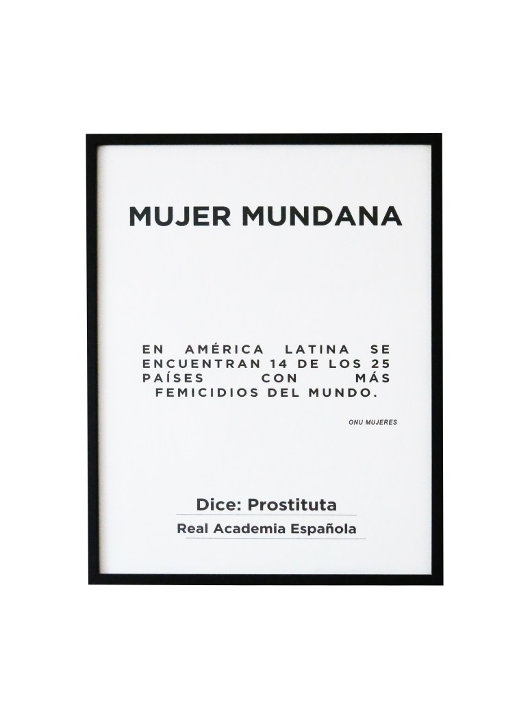 “Campo semántico” propone una reflexión sobre la base del lenguaje, indagando las delimitaciones conceptuales dadas por la Real Academia Española en torno a la palabra ‘mujer’. Desde ahí se establece un diálogo irónico y descarnado, intentando visibilizar así el impacto del lenguaje en la construcción de realidades.